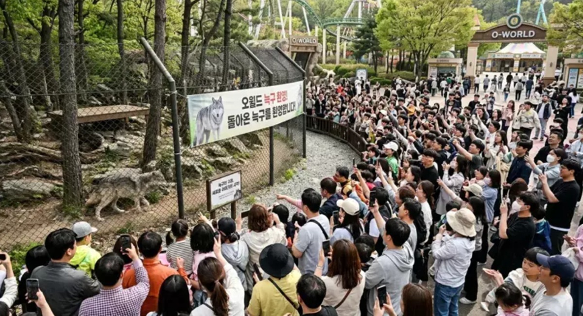 사람들의 시선은 오로지 우리 안 늑대 한 마리에게 집중돼 있다. 평범한 동물원 풍경이라기보다는, 마치 아이돌 팬 미팅 현장을 방불케 하는 모습이다. 인기 스타의 컴백 무대를 기다리는 팬덤의 열기와 닮았다.