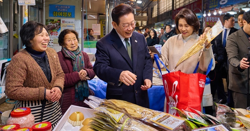 이재명 대통령이 설 명절을 앞두고 충북 충주를 찾아 전통시장을 돌며 민생 현장을 점검했다.