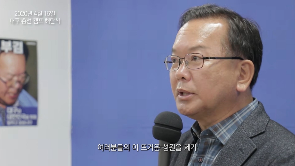 ‘소명: 그날의 약속을 지키겠습니다’라는 제목의 영상은 2020년 4월 16일 대구 총선 캠프 해단식 장면으로 시작한다. 당시 김 전 총리는 “정치인 김부겸은 때가 되면 쓰임새가 있을 것”이라며 “대구·경북이라는 끊으려야 끊을 수 없는 이 도시의 아픈 목소리를 대변하는 역할도 계속할 것”이라고 말했다.
