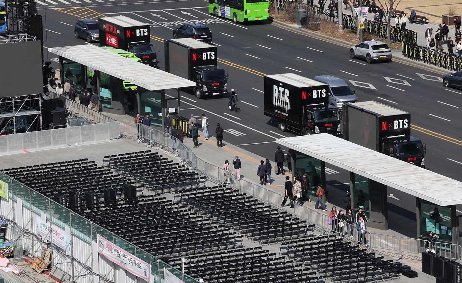 당사자인 BTS도 팬들에게 안전을 당부하고 나섰다. 리더 RM은 공연 이틀 전인 전날 팬 플랫폼 위버스를 통해 "여러분을 만날 생각에 저희도 정말 설렌다"며 "많은 분이 모이는 자리인 만큼 모두가 안전하고 즐겁게 공연을 즐길 수 있도록 부탁드린다"고 적었다. 그는 안전을 위해 힘쓰는 경찰관, 소방, 정부와 지자체 관계자들에게도 감사 인사를 전했다. 맏형 진은 "의미 있는 곳에서 오랜만에 다 같이 인사드릴 수 있어 영광"이라며 "저희도 최선을 다해 좋은 무대를 보이겠다"고 약속했다.