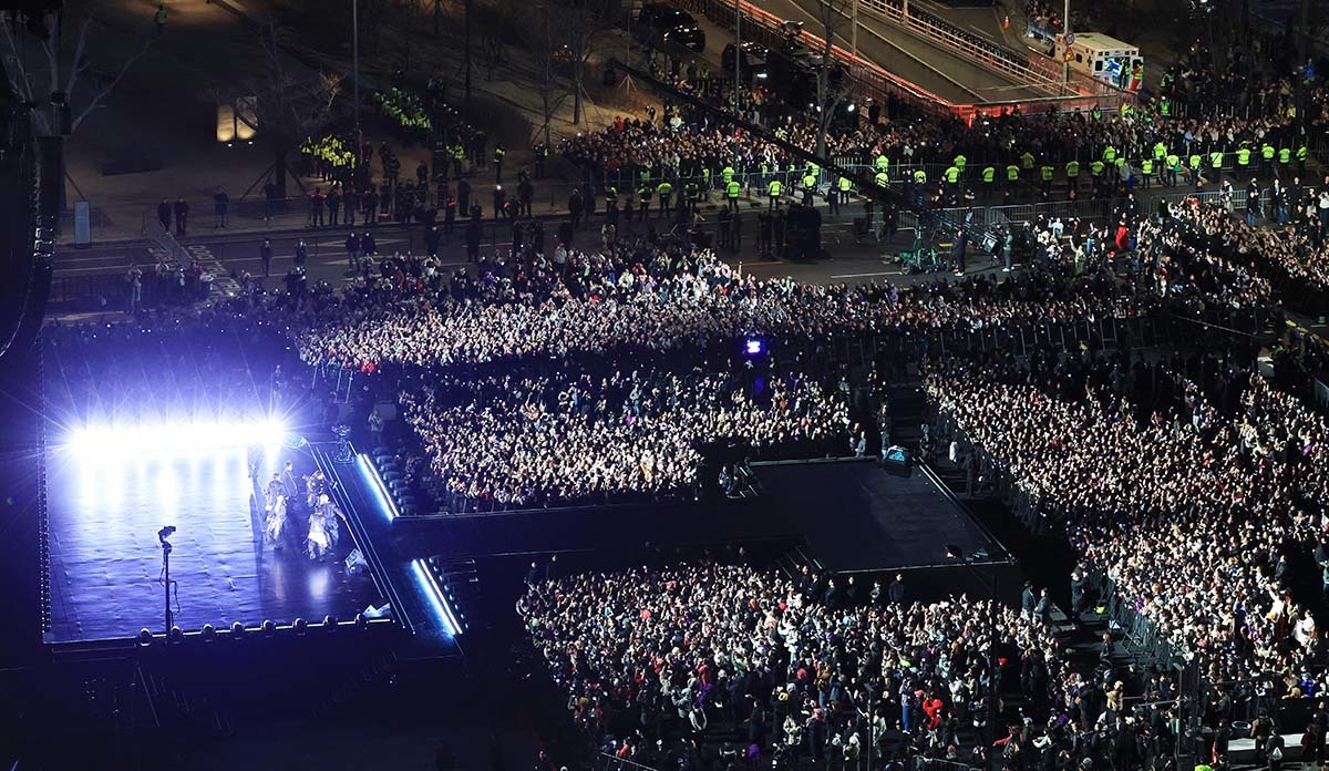 공연 시간이 다가올수록 광장 안팎의 인파 밀집도는 높아졌다. 경찰은 밀집 정도에 따라 공연장 일대를 '코어·핫·웜·콜드' 4개 권역으로 구분하고, 무대를 직접 볼 수 있는 '핫존'에 10만명이 차면 추가 입장을 막을 계획이었다. 관객석 바깥으로 인파가 쏟아지자 경찰은 해당 팬들을 서울광장 쪽으로 유도했고, "무브! 무브"를 연신 외치는 목소리가 현장 곳곳에서 터져 나왔다.
