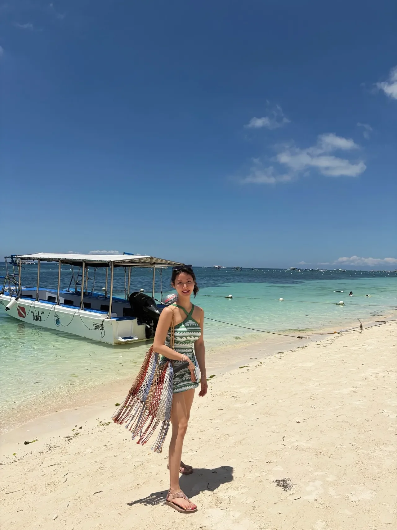 한그루, 보라카이 바다를 닮은'그린 웨이브'… 원피스 수영복의 청량한 반란