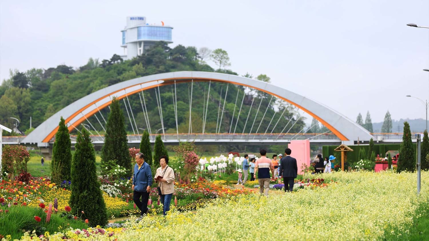 꽃강길 전 구간은 5개의 테마 정원으로 나뉜다. 웰컴가든, 플로라가든, 봄꽃정원, 생태정원, 어린이정원. 각각 콘셉트가 다르다. 유럽식 기하학 정원부터 아이들이 뛰어놀 수 있는 동화형 공간까지, 구역마다 분위기가 달라 길을 따라 걷는 것만으로 다양한 경험이 쌓인다.