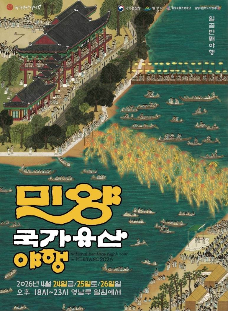 경남 밀양의 대표적 국가유산인 영남루와 밀양강 일대를 배경으로 한 ‘2026 밀양 국가 유산 야행’이 본격적인 막을 올린다. 이번 행사는 밀양강과 시민을 유산으로 잇는다는 주제 아래 야경부터 야숙까지 총 8가지 테마로 구성된 복합 문화 축제 형태로 전개되며 지역의 역사적 자산과 현대적 감각을 결합한 다채로운 프로그램이 관람객을 맞이한다.