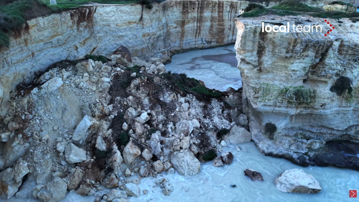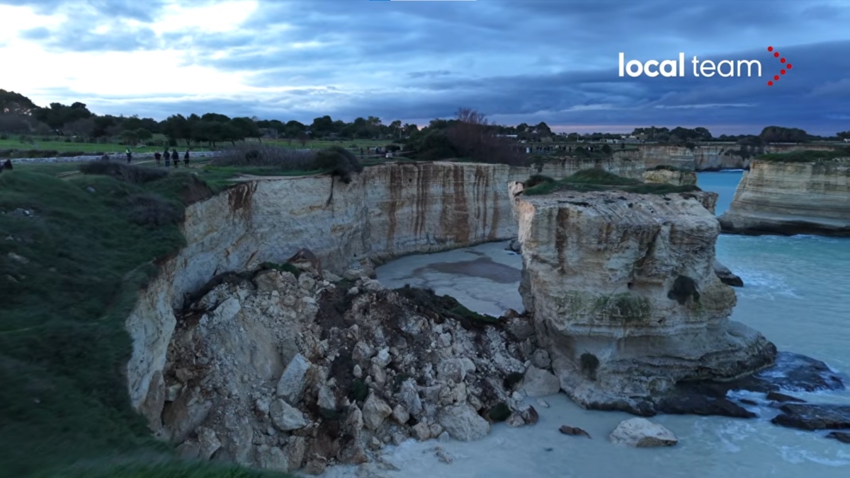 16일(현지시간) CNN과 영국 가디언 등 외신 보도에 따르면 지난 14일 밸런타인데이 무렵 풀리아주 멜렌두뇨 산탄드레아에 위치한 해식 아치 ‘연인의 아치’가 거센 폭풍과 파도에 붕괴됐다고 연합뉴스가 보도했다.