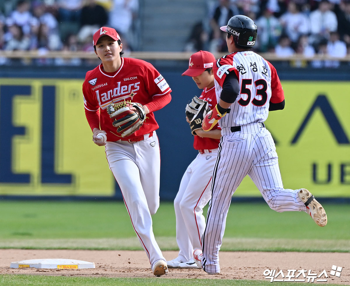 김민준 ‘베이스 직접 밟으며 이닝 종료’[포토]