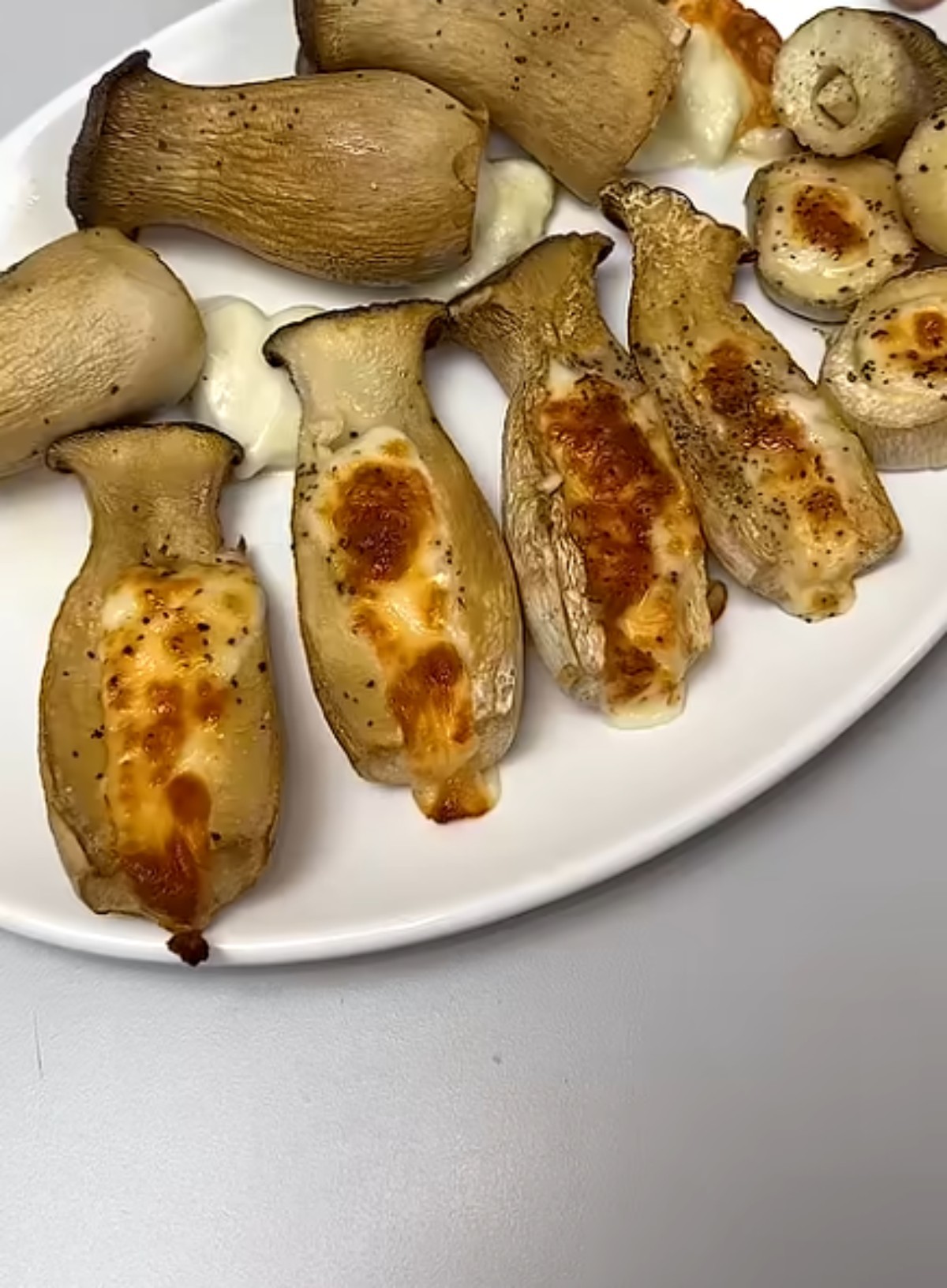 치즈와 스트링 치즈가 가장 대중적인 재료라면, 최근에는 개인의 취향에 맞춘 다양한 '필링' 조합이 등장하고 있다. 명란 마요를 넣을 수도 있다. 명란젓의 막을 제거한 뒤 마요네즈와 섞어 버섯 구멍 안에 채운다. 치즈의 고소함과는 다른 짭조름한 바다의 풍미가 버섯의 감칠맛과 조화를 이룬다.