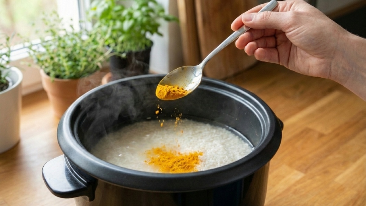 그렇기 때문에 이 레시피에서 핵심적인 역할을 하는 것이 바로 '올리브유 한 스푼'이다. 커큐민은 지방과 함께 섭취했을 때 장에서의 흡수율이 비약적으로 증가한다. 밥을 지을 때 이런 지방을 첨가하면 쌀알 표면이 코팅되어 윤기가 흐르는 동시에, 커큐민 성분이 오일에 녹아들어 섭취 시 인체가 흡수하기 가장 좋은 상태가 된다.