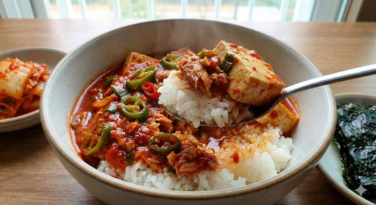 갓 지은 하얀 쌀밥 위에 조림 국물을 듬뿍 얹고 쫀득한 두부 한 조각과 고소한 참치 살코기를 올려 한 입 먹어보면 왜 이 요리가 밥도둑인지 알게 된다. 짭조름하면서도 칼칼한 양념이 입안을 자극하고 두부의 부드러움과 참치의 감칠맛이 어우러져 다른 반찬에 손이 가지 않게 만든다.
