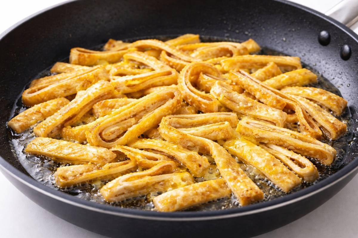 조리의 첫 단추는 어묵 손질이다. 어묵은 긴 부분을 돌돌 말아 얇게 채 썬 뒤 채반에 넣고 뜨거운 물을 부어 한 번 부드럽게 익힌다. 데친 어묵을 그릇에 담고 계란 1개를 깨 넣어 골고루 입혀 ‘계란 옷’을 만든다. 이 단계가 식감 차이를 만든다. 계란이 어묵 표면을 감싸면 구웠을 때 더 고소하고, 이후 양념이 ‘겉돌지 않고 붙는’ 느낌이 살아난다는 것이다.