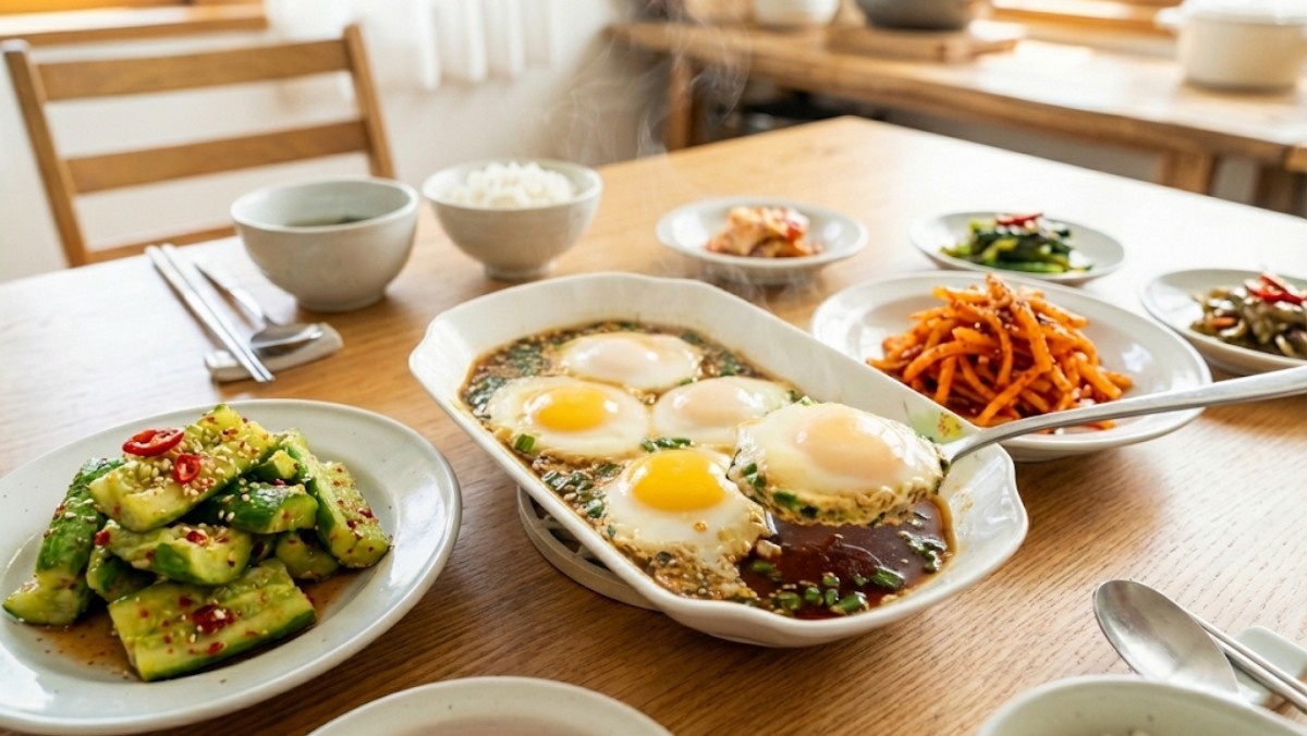 부드럽고 짭조름한 계란찜에는 아삭한 식감과 산뜻한 산미를 가진 오이 요리가 최적의 궁합을 이룬다. 아삭하면서도 새콤한 '오이 탕탕이' 조리 과정은 매우 간단하다. 먼저 오이를 세척한 후 비닐봉지에 넣고 칼등이나 밀대로 가볍게 두드려 한입 크기로 쪼갠다. 여기에 설탕 1스푼, 식초 2스푼, 소금 한 꼬집, 다진 마늘 약간을 넣고 섞는다. 오이의 수분 함량은 약 95%로, 계란찜의 단백질 섭취 시 발생할 수 있는 갈증을 해소해 줄 수 있다.