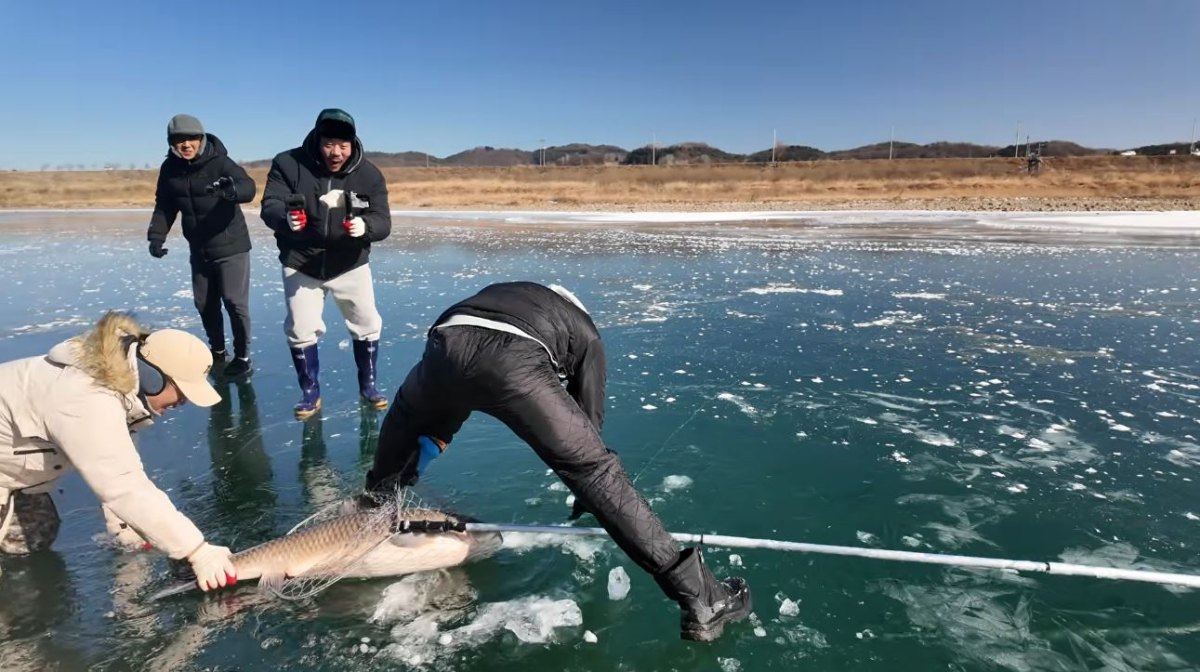 한겨울의 매서운 추위가 몰아치는 최북단 임진강, 꽁꽁 얼어붙은 강물 아래에서 상상을 초월하는 거대한 생명체가 모습을 드러냈다. 유튜브 채널 ‘채니아빠’는 최근 임진강에서 110cm가 넘는 중국산 외래종 ‘초어’를 포획하는 긴박한 현장을 공개해 화제를 모으고 있다.