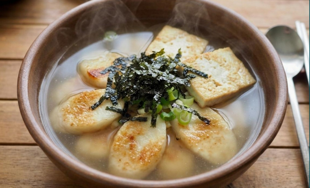 떡을 구우면 겉은 바삭하고 속은 쫄깃해지며 국물에 구운 기름의 고소한 향이 배어들어 일반 떡국과는 다른 풍미를 낸다. '꾸븐 떡국'이라고도 불리며, 떡의 겉면이 국물에 풀어지지 않아 국물이 깔끔하고 떡 자체의 씹는 맛이 살아있다.