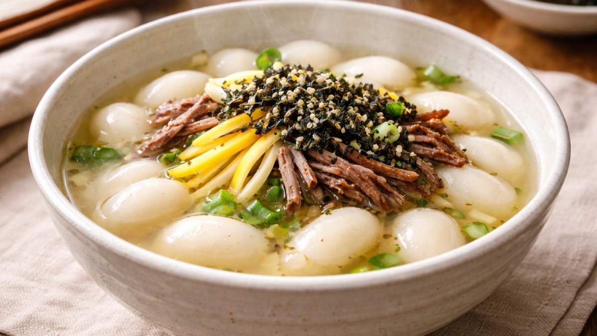 조랭이 떡국의 레시피는 간단하다. 사골이나 양지머리로 진한 육수를 낸 뒤 떡을 찬물에 씻어 준비한다. 육수가 끓으면 떡과 함께 속이 꽉 찬 고기 만두를 넣는다. 이후 국간장으로 간을 하고, 고명으로 실지단과 쇠고기 볶음을 올리면 완성된다.