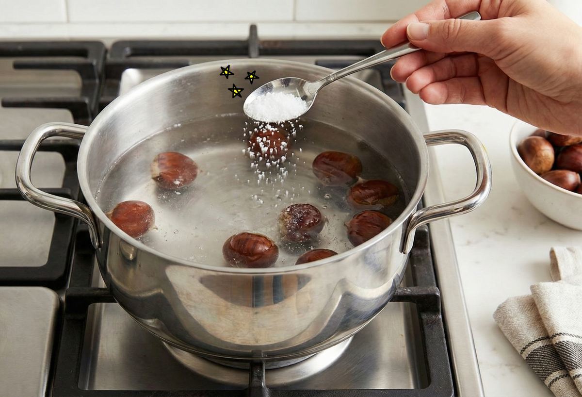 핵심은 '소금'이다. 소금 1스푼이 밤의 단맛을 살리고 껍질 분리를 돕는 역할을 한다.