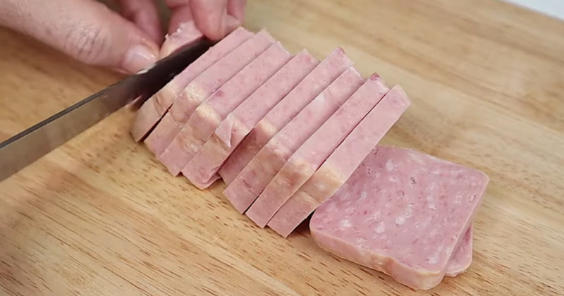 가장 먼저 해야 할 일은 스팸 손질이다. 통조림에서 꺼낸 뒤 키친타월로 겉면의 기름기를 가볍게 닦아낸다. 이 과정을 거치면 부침가루가 고르게 묻고, 부칠 때 기름이 과도하게 튀는 것을 줄일 수 있다. 두께는 0.7~1cm 정도가 적당하다. 너무 두꺼우면 속까지 데워지는 데 시간이 걸려 겉은 타고 속은 차가울 수 있고, 너무 얇으면 쉽게 부서진다.
