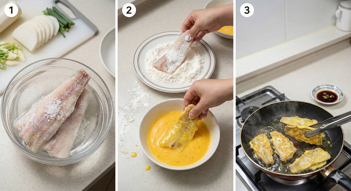 이 방법으로 만든 동태전은 시간이 지나도 비린 맛이 올라오지 않고 살이 쫄깃하다. 평소 동태전 요리가 어려웠다면 소금물 녹이기와 콩가루 활용법을 꼭 써보길 바란다. 작은 차이가 음식의 격을 바꾼다.