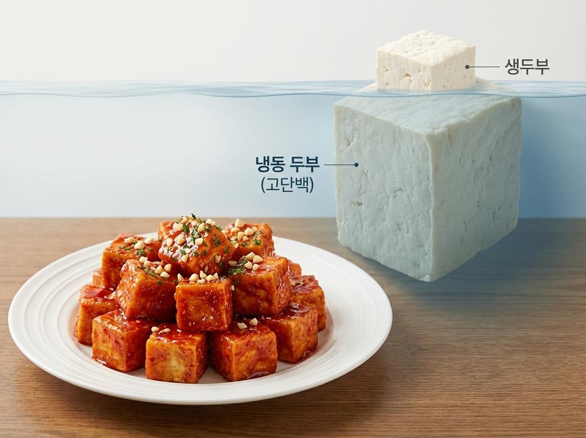 두부를 냉동하면 내부 수분이 얼면서 작은 얼음 결정이 형성된다. 해동 과정에서 이 얼음이 녹으며 수분이 빠져나가고, 그 자리에 구멍이 생긴다. 결과적으로 스펀지처럼 송송 뚫린 조직이 된다. 신선한 두부의 부드럽고 매끈한 식감과는 완전히 다르다. 대신 쫄깃하고 단단한 식감으로 변한다.