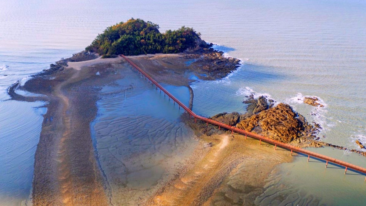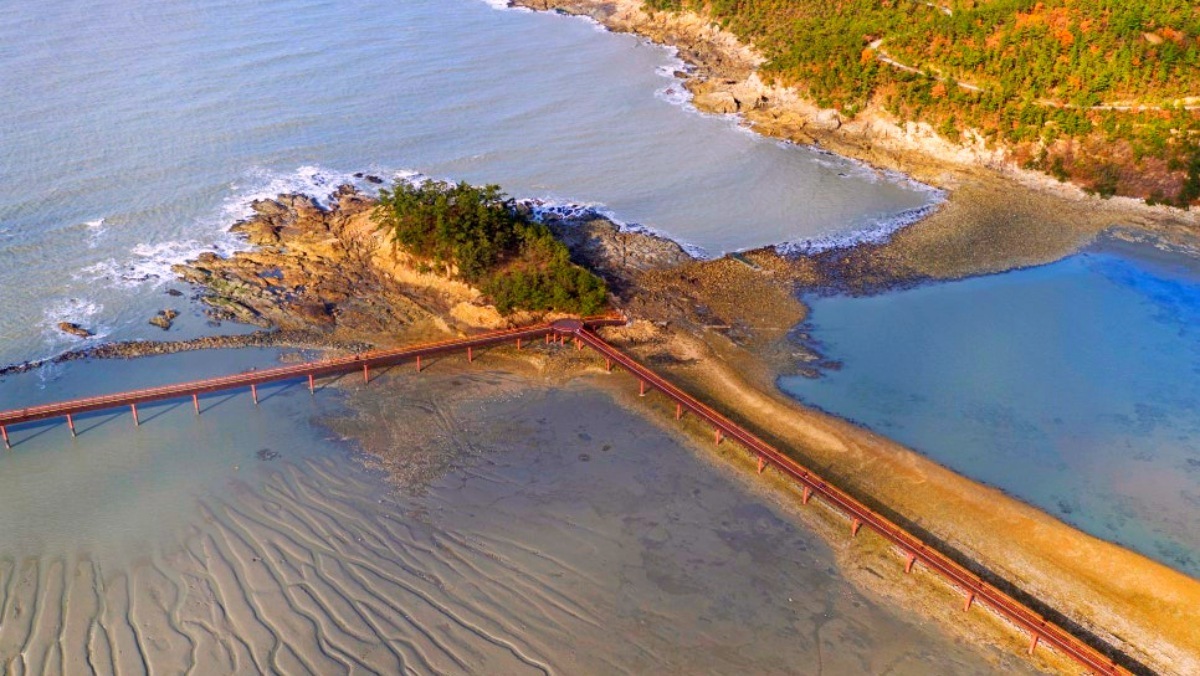 특히 밀물과 썰물 때 전혀 다른 경관을 선보인다. 밀물 때는 바다 위를 직접 걷는 듯한 아찔한 스릴감을 제공하는 반면 썰물 때는 갯벌이 드러나면서 오묘한 풍경을 자아낸다.