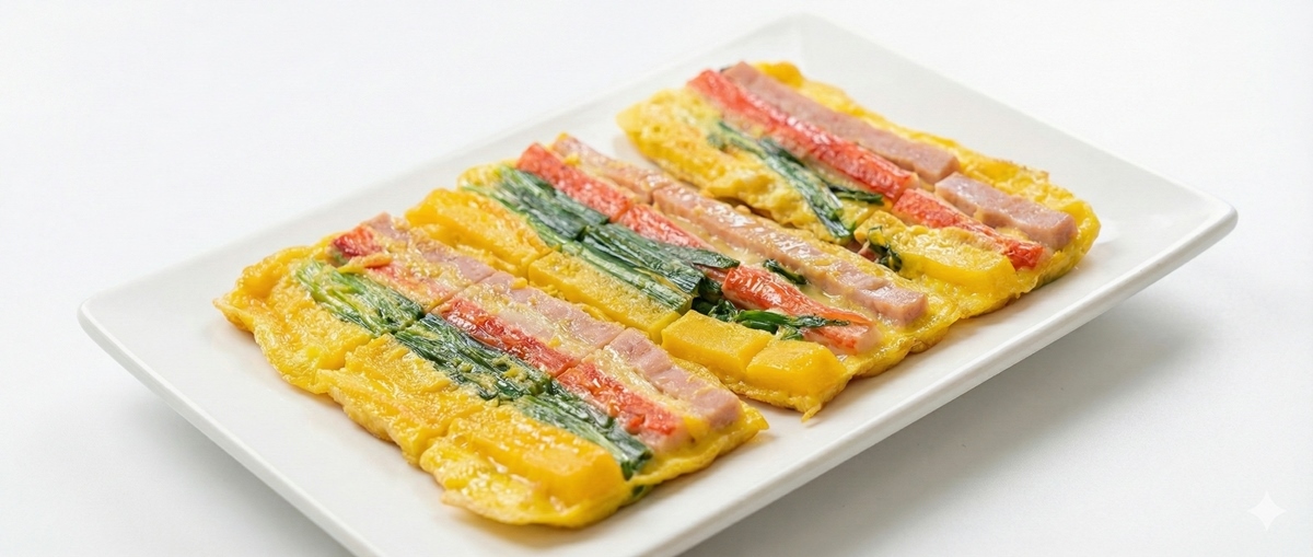 사각 프라이팬은 충분히 예열한 뒤 기름을 얇게 펴 바르고, 중약불에서 천천히 익혀야 타지 않는다. 계란물을 재료 위에 한 숟가락씩 얹어 접착력을 높이고, 뒤집을 때는 바닥이 완전히 익은 후 한 번에 조심스럽게 뒤집는다.