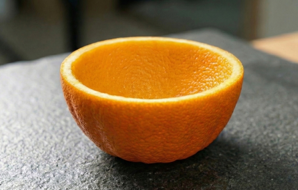 귤껍질로 찻잔을 만드는 방법은 이렇다. 귤의 윗부분을 칼로 동그랗게 잘라낸다. 이때 너무 많이 자르면 잔이 얕아질 수 있으니 적당한 두께를 유지하는 것이 중요하다. 이제 껍질이 찢어지지 않도록 숟가락 등을 이용해 과육만 조심스럽게 파낸다. 같은 방식으로 속이 비워진 귤껍질을 총 두 개 준비한다.