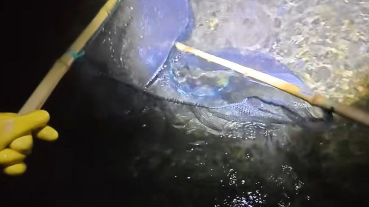 칠흑 같은 어둠이 내려앉은 일본 대마도의 한 하천. 바다와 맞닿은 이곳의 수면 아래에서는 예상 밖의 장면이 포착됐다. 하천 바닥을 스치듯 유영하던 개체는 바다 어종으로 알려진 노랑가오리였다. 연안 얕은 바다에 주로 서식하는 종이 하천 수면 아래에서 모습을 드러내자 현장은 그야말로 두 눈을 의심하게 하는 상황이었다.