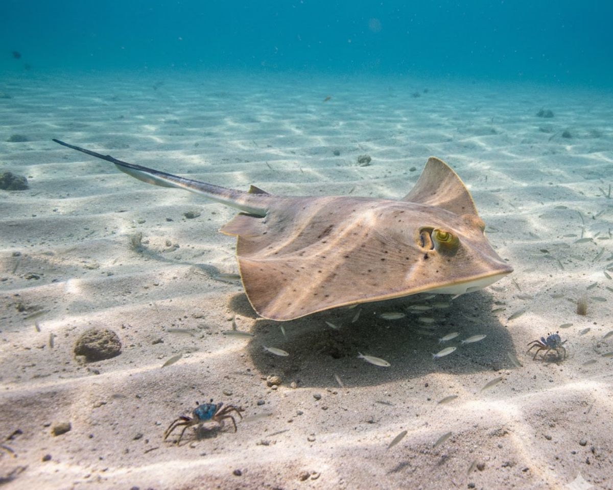 잡힌 개체는 아주 어린 새끼였으나, 꼬리에는 치명적인 독침이 있어 맨손으로 만지는 것은 절대 금물이다. 가오리는 위협을 느끼면 꼬리를 들어 올려 찌르는 습성이 있으며, 독침은 톱니 구조로 돼 있어 한 번 박히면 잘 빠지지 않아 위험하다.