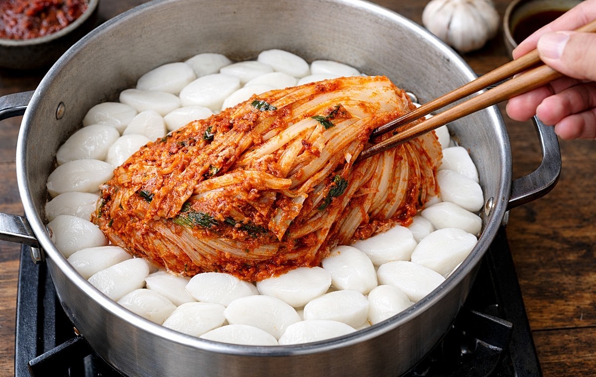 떡국 떡은 찌개가 어느 정도 끓어 김치의 맛이 충분히 우러난 뒤에 넣는 것이 좋다. 떡을 미리 찬물에 잠시 담가 두면 겉이 부드럽게 풀어져 국물과 잘 어우러진다. 떡이 들어가면 국물을 머금으며 서서히 부풀어 오르고 씹을 때마다 쫀득한 식감과 담백한 단맛이 퍼진다.