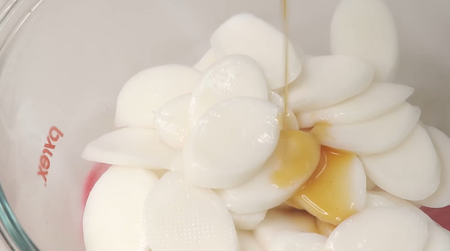 떡 상태에 따라 준비 과정이 달라진다. 아직 냉동하지 않은 생떡이라면 흐르는 물에 가볍게 헹궈 전분기를 제거한 뒤 물기를 빼둔다. 겉면의 마른 전분을 씻어내야 볶을 때 서로 달라붙지 않는다. 이미 냉동한 떡이라면 찬물에 10~15분 담가 천천히 해동한다. 전자레인지로 급하게 녹이면 겉은 물러지고 속은 딱딱해질 수 있다. 해동 후에는 키친타월로 물기를 제거한다.