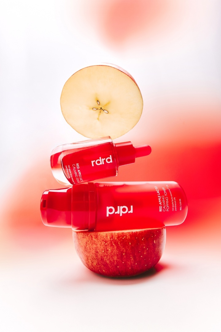 첫 상품 라인업은 사과에서 유래된 ‘애플 락토’ 라인으로, 버블 토너 4종, 세럼 4종 제품으로 구성됐다. 사과 유래 성분을 락토바실러스 발효 공정을 통해 고도화한 rdrd만의 <독자 원료 ‘애플 락토 엑소좀™’>을 적용해 붉은기 진정에 특화된 액티브 포뮬러를 구현했다.