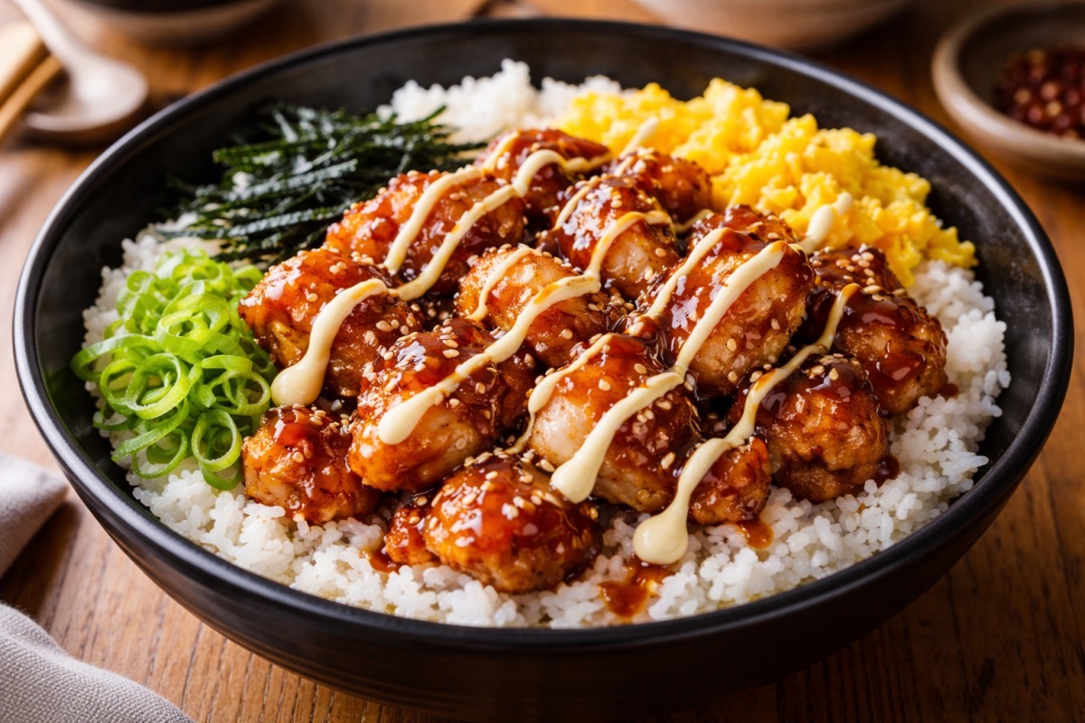 남은 치킨을 덮밥으로 먹을 수도 있다. 치킨을 잘게 찢어 팬에 살짝 볶은 다음, 밥 위에 볶은 치킨과 스크램블 에그, 김가루 등을 올리고 데리야끼 소스와 마요네즈를 더하면 완성된다.