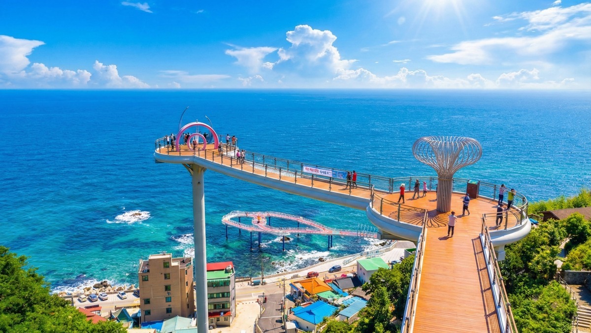논골담길에서 골목 산책을 마쳤다면, 가까운 거리에서 바로 이어지는 도째비골 스카이밸리로 발길을 옮겨보는 것도 좋다. 묵호등대 일대와 맞닿아 있어 ‘언덕 골목 감성’에서 ‘바다 위 체험’으로 분위기를 단숨에 바꿔주는 코스다. 해발 59m 높이에 설치된 스카이워크에 오르면 마치 바다 위를 걷는 듯한 짜릿함을 느낄 수 있고, 스카이 사이클과 자이언트 슬라이드 등 체험 시설도 갖춰져 가족 단위는 물론 젊은 여행객들에게도 인기가 높다. 입장료는 성인 3000원, 학생 2000원이다.