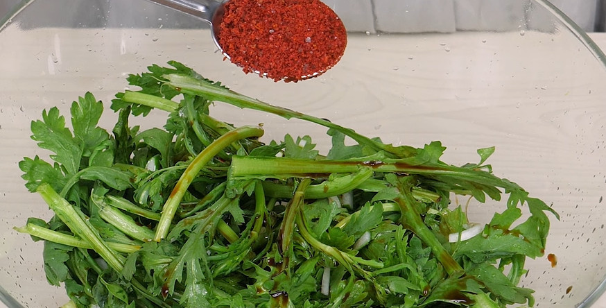 양념은 간장 1큰술, 매실액 1큰술, 고춧가루 1작은술, 다진 마늘 1/2큰술, 참기름 1큰술, 통깨 약간을 기본으로 한다. 매실액은 단맛과 산미를 동시에 더해 쑥갓 특유의 쌉싸름함을 부드럽게 감싸준다. 설탕 대신 매실액을 사용하면 맛이 한결 자연스럽고 깔끔하다.