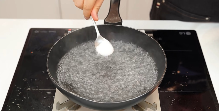 세척이 끝난 냉이는 끓는 물에 소금을 약간 넣고 30초에서 1분 이내로 짧게 데친다. 냉이는 연한 잎채소이기 때문에 오래 데치면 색이 탁해지고 식감이 무른다. 데친 뒤에는 곧바로 찬물에 헹궈 잔열을 제거한다. 손으로 가볍게 물기를 짜되 너무 세게 비틀지 않는다. 물기를 적당히 제거한 뒤 4~5cm 길이로 썰어 준비한다.