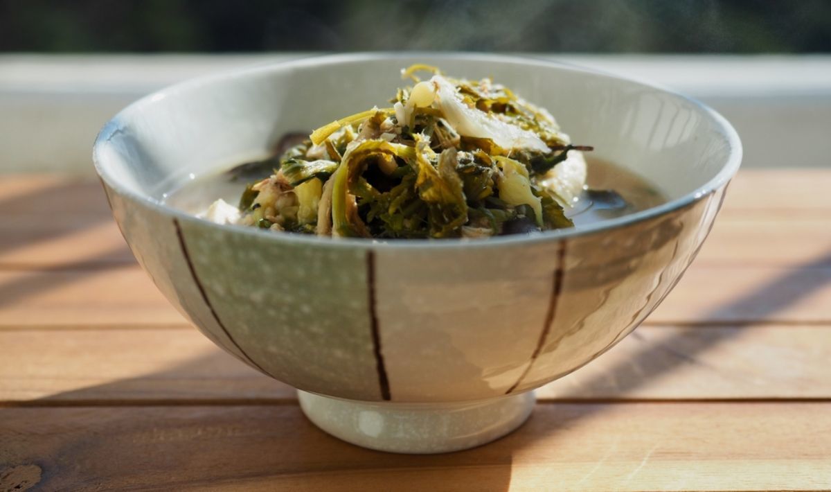 이렇게 끓여낸 냉이 된장국은 냄새부터 다르다. 집안 가득 퍼지는 달큰한 냉이 향과 구수한 콩가루 향이 식욕을 돋운다. 국물을 한 입 먹어보면 바지락이나 새우에서 우러난 시원한 맛이 먼저 느껴지고, 뒤이어 콩가루의 고소함이 혀끝에 남는다. 콩가루 옷을 입은 냉이는 평소보다 훨씬 보들보들하게 씹힌다.