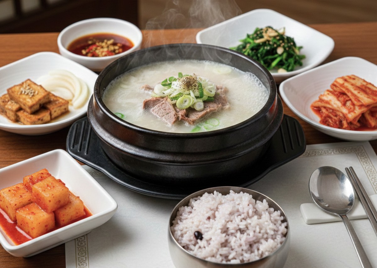 또한 설렁탕 한 그릇에 밥과 김치, 깍두기가 곁들여지는 차림새는 일본의 '테이쇼쿠(정식)' 문화와 닮아 있다. 1인분씩 정갈하게 나오는 국밥 형태가 일본인들에게 익숙하기 때문이다. 특히 설렁탕의 담백한 맛과 한국 김치의 매콤한 맛이 이루는 조화는 일본 미디어에서 '환상의 궁합'으로 자주 묘사되곤 한다.
