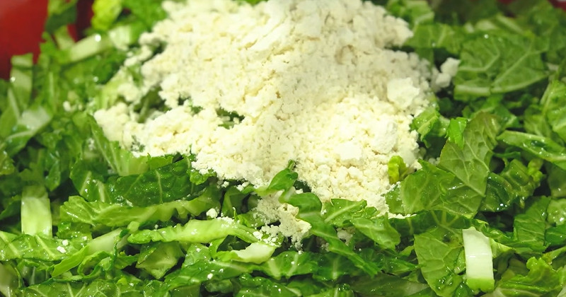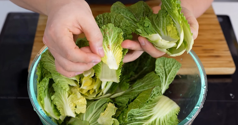 먼저 봄동은 밑동을 제거한 뒤 잎을 한 장씩 떼어 흐르는 물에 깨끗이 씻는다. 흙이 남기 쉬운 부분이므로 줄기 사이를 꼼꼼히 헹구는 것이 좋다. 물기를 털어낸 뒤 1cm 폭 정도로 가늘게 채 썬다. 너무 굵으면 찌는 시간이 길어지고, 너무 가늘면 식감이 무를 수 있어 적당한 두께를 유지한다.