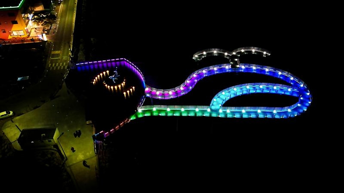 하늘고래전망대의 분위기는 해가 저문 뒤 더욱 또렷해진다. 서해의 낙조가 수평선 너머로 사라지면 고래 조형물에 설치된 200여 개의 LED 조명이 빛을 밝히고, 전망대에서 이어지는 ‘영흥 반딧불이 하늘고래 스카이워크’도 존재감을 드러낸다. 총연장 180m, 폭 3m 규모의 해상 보행교를 따라 경관조명이 점등되면 바다를 배경으로 빛이 다채롭게 펼쳐져 한층 인상적인 야경이 완성된다. 가까이에 있는 영흥대교의 조명, 바다 위를 오가는 어선의 불빛까지 어우러지면서 섬마을 특유의 서정이 짙어진다.