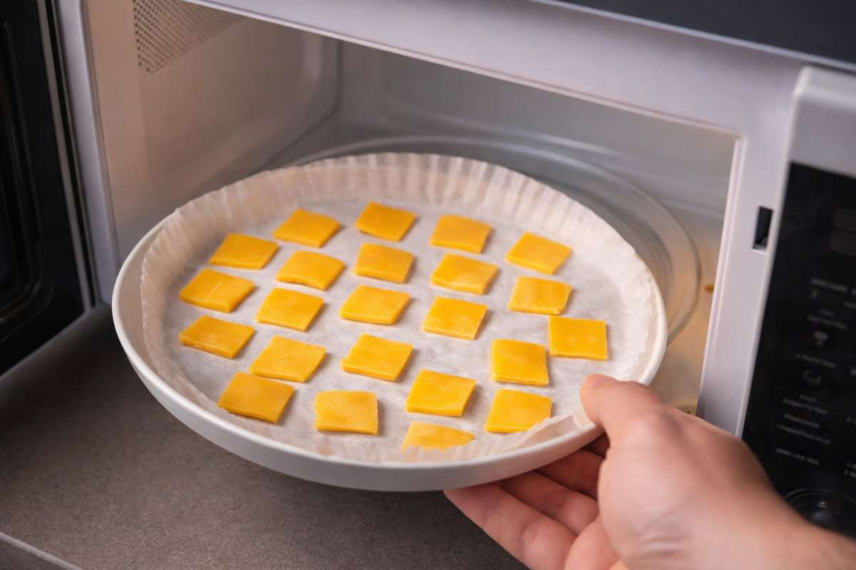 접시 위에는 반드시 종이호일을 깐다. 치즈는 전자레인지에서 녹았다가 다시 굳으면서 접시에 붙기 쉽다. 종이호일을 사용해야 깔끔하게 떨어진다. 자른 치즈는 서로 붙지 않도록 2~3cm 간격을 두고 올린다. 간격이 좁으면 녹으면서 한 덩어리로 붙는다.