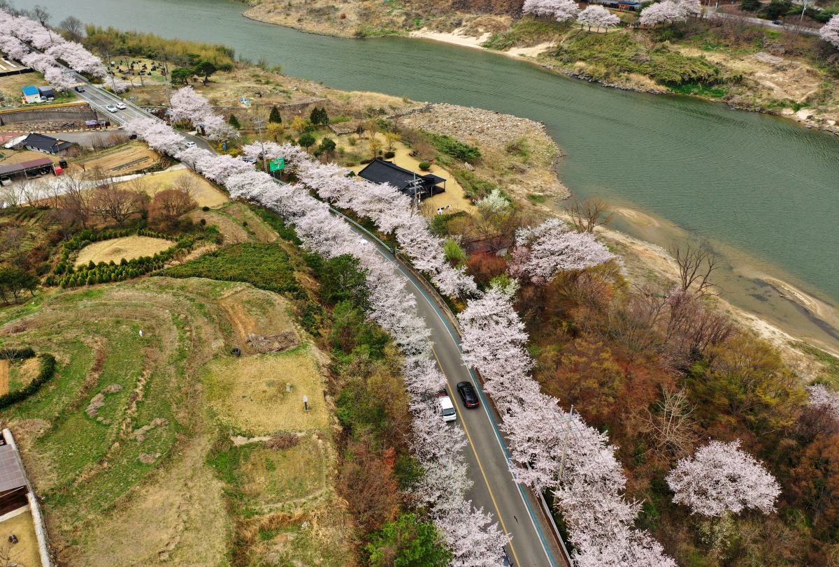 차창 밖으로 끝없이 이어지는 벚나무들이 하늘을 덮으며 터널을 만들고 강 건너 전북 남원과 마주한 섬진강은 잔잔하게 흐른다. 강폭이 넓어 시야가 트여 있어 답답함이 없고 도로 자체도 비교적 한적해 드라이브 코스로 손꼽힌다.