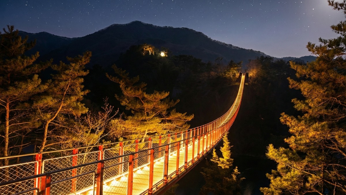 낮에는 계곡과 능선을 한눈에 담는 출렁다리였다면, 밤에는 황금빛 조명 아래 몽환적인 산책 코스로 바뀌어 같은 장소를 두 번 즐기는 느낌을 준다. 다만 야간 운영은 계절·일몰 시간·현장 상황에 따라 달라질 수 있어 방문 전 안내 채널이나 현장 공지를 한 번 더 확인해두면 좋다.