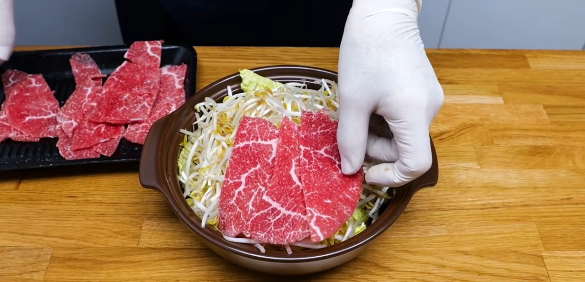 이 요리에는 알배추와 숙주 말고도 냉장고에 남은 다른 자투리 채소들을 활용할 수 있다. 팽이버섯, 새송이버섯 등 버섯류는 소고기의 감칠맛을 증폭시키며, 청경채나 비타민 등의 쌈 채소는 색감을 다채롭게 만든다. 단, 감자나 당근처럼 단단한 뿌리채소를 추가할 경우 얇게 슬라이스하여 바닥 쪽에 깔아야 10분 내에 고르게 익는다.