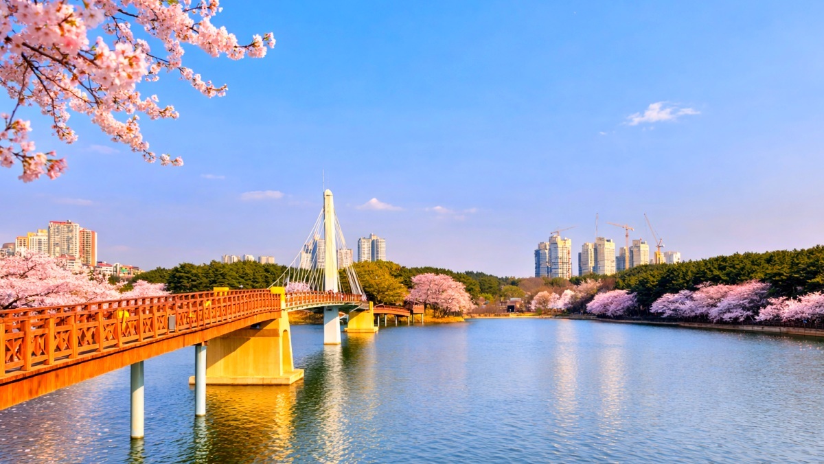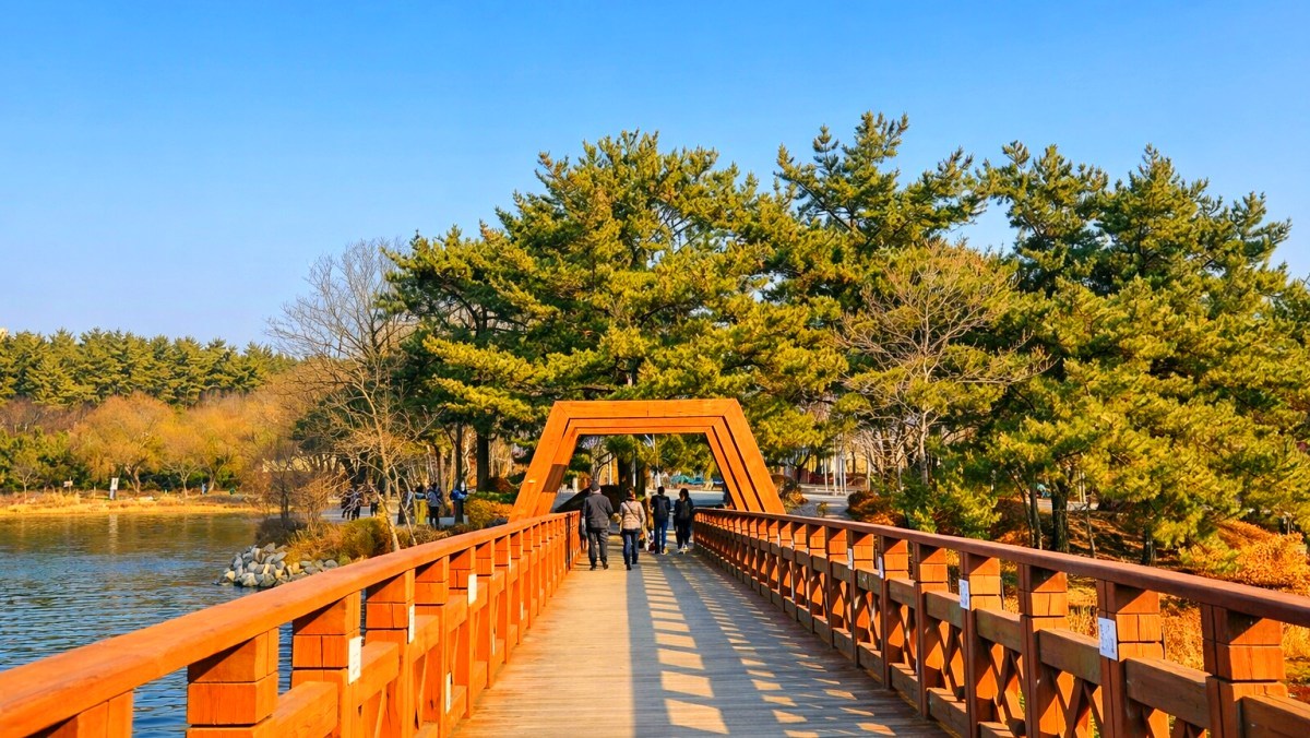 이맘때쯤 호수 주변 순환 도로 전체가 거대한 벚꽃 터널로 변신하는 국내 명소가 있다. 군산의 허파이자 시민들의 안식처인 이곳은 어디일까?