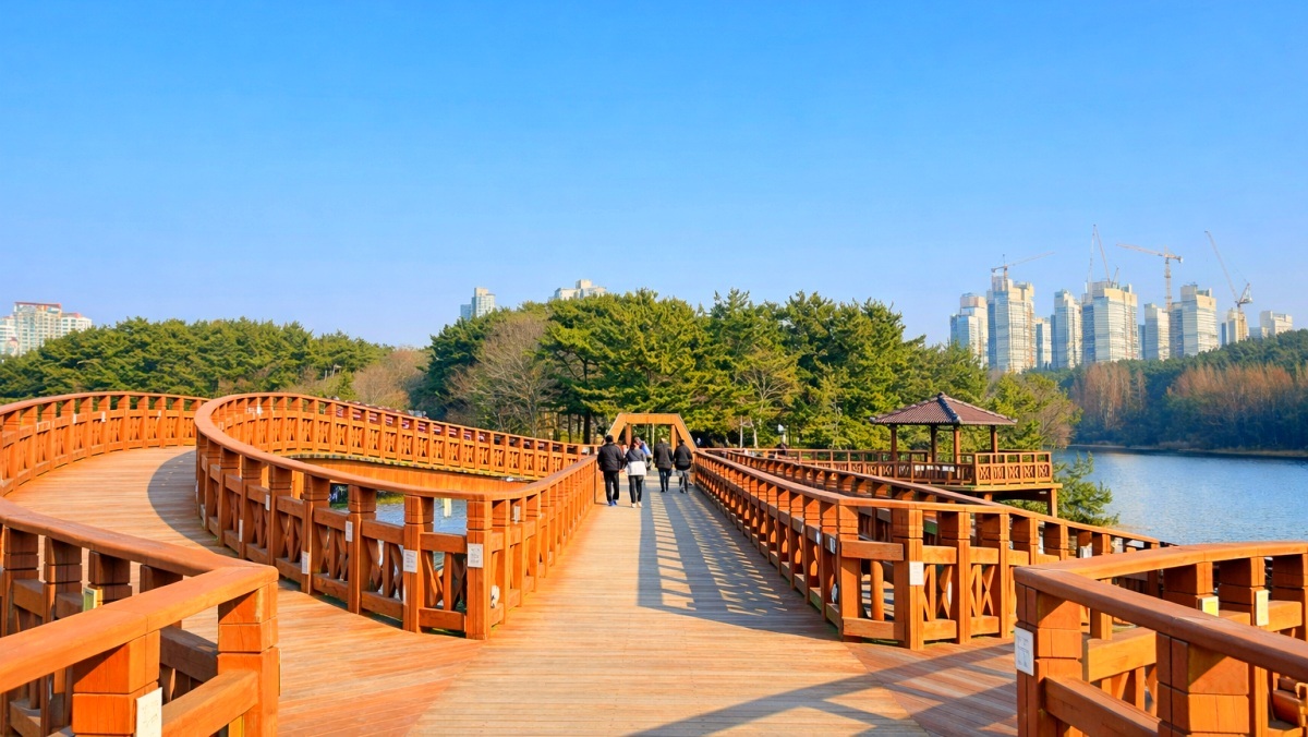 공원 내에는 다채로운 볼거리가 마련돼 있다. 호수 위를 가로지르는 370m길이의 보도 현수교인 물빛다리는 밤이 되면 오색찬란한 조명이 켜져 환상적인 야경을 연출한다. 다리 중간에는 공연이나 휴식을 즐길 수 있는 광장이 조성돼 있다.