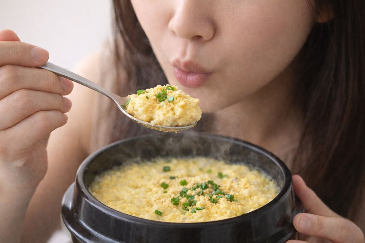 이 상태에서 새우가루를 넣어 섞은 뒤 약한 불에서 천천히 익히거나 중탕 방식으로 익히면 훨씬 부드러운 식감이 완성된다. 마지막에 다진 파를 조금 올리고 참기름을 몇 방울 떨어뜨리면 고소한 향이 더해져 훨씬 먹음직스러운 계란찜이 된다.