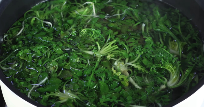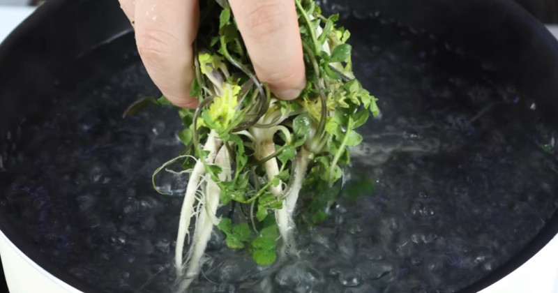 손질한 냉이는 끓는 물에 살짝 데쳐야 한다. 이때 물에 소금을 약간 넣으면 냉이의 색이 더욱 선명하게 유지된다. 데치는 시간은 너무 길지 않게 30초에서 1분 정도가 적당하다.
