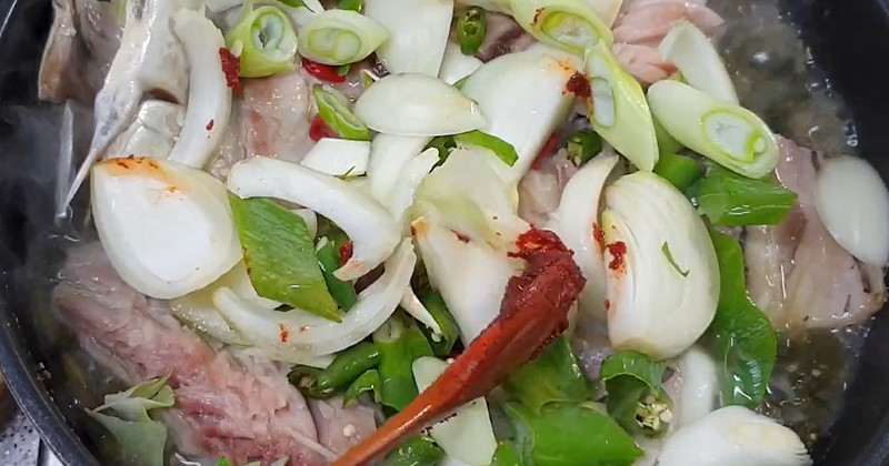 물이나 다시마 육수를 자작하게 붓고 끓이기 시작한다. 처음에는 센 불로 끓이다가 국물이 끓어오르면 중불로 줄여 천천히 조린다. 약 20분 정도 끓이면 양념이 시래기와 고등어에 깊이 배어든다.
