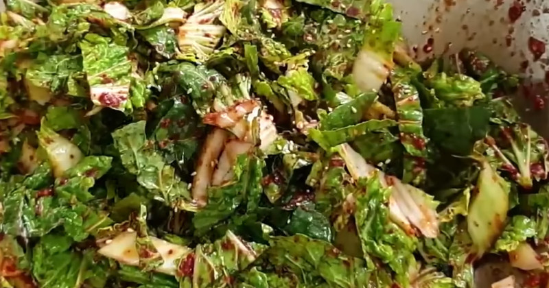 마지막 단계에서 봄동을 넣는 것이 중요하다. 봄동은 오래 익히면 숨이 너무 죽기 때문에 마지막에 넣어 살짝만 볶는 것이 좋다. 센 불에서 1~2분 정도만 뒤집어 주면 적당히 숨이 죽으면서도 아삭한 식감이 살아 있다.