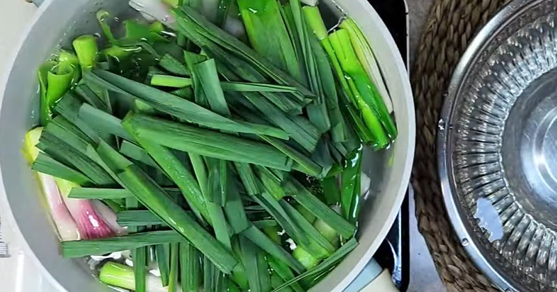 다음 단계는 데치는 과정이다. 끓는 물에 소금을 약간 넣고 풋마늘대를 30초 정도만 살짝 데친다. 너무 오래 데치면 아삭한 식감이 사라질 수 있으므로 짧은 시간이 중요하다. 데친 뒤에는 곧바로 찬물에 헹궈 색을 살리고 열기를 식힌다.