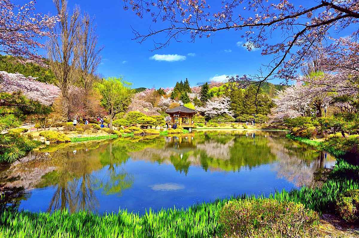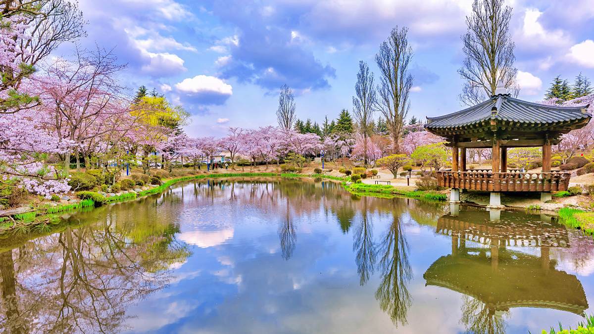 봄이 찾아오면 보문정은 일 년 중 가장 화사한 모습을 드러낸다. 일반적인 벚나무와 달리 가지가 아래로 길게 늘어지는 수양벚꽃이 연못가를 따라 피어나기 때문이다. 바람이 스치면 분홍빛 꽃잎이 연못 위로 흩날리고, 그 풍경이 잔잔한 수면에 비치며 한 폭의 그림 같은 장면을 만들어낸다. 유연하게 휘어진 꽃가지는 정적인 공간에 부드러운 생동감을 더하고, 이 시기의 보문정은 찰나의 아름다움을 사진에 담으려는 사람들로 더욱 활기를 띤다.